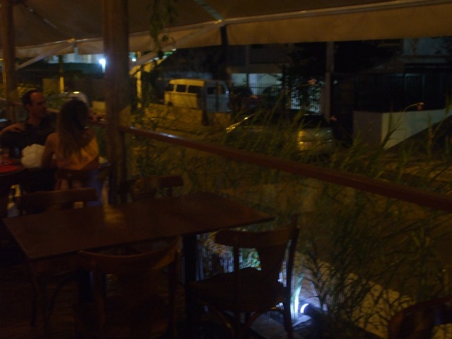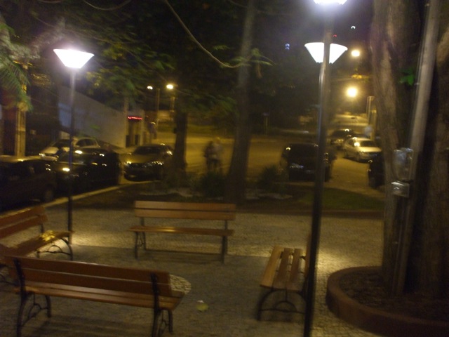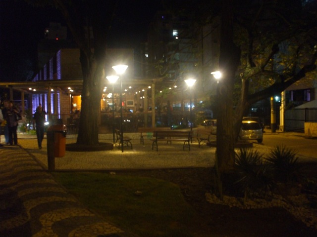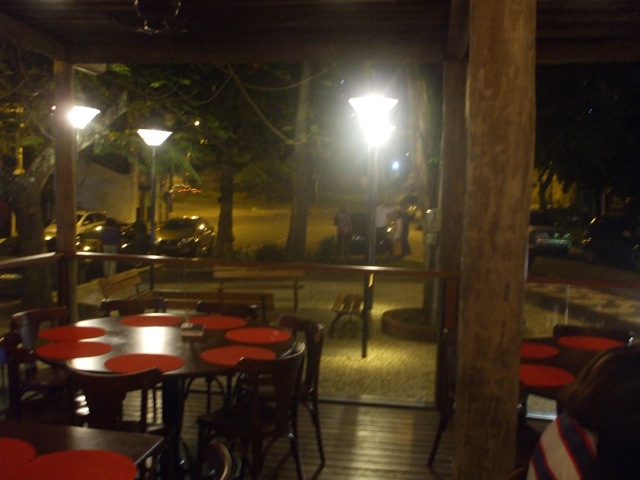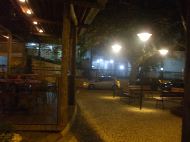 A cereja do bolo vem agora: em frente ao estabelecimento, numa área totalmente aberta e usada pelos estudantes do Colégio Oficina (próximo) mesmo quando a pizzaria está fechada, fez-se uma pequena praça, aproveitando-se as árvores já existentes, com um jardim de sisaleiras ao modo de Burle Max e bancos a vontade, embora o espaço seja exíguo. É evidente que se fez isso para que os clientes esperem em momentos de casa cheia; mas que adorável efeito colateral de gentileza urbana isso tem (seguramente atraindo clientes que de outra forma nem lá iriam, como eu):