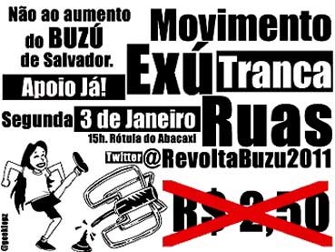 Acabou que o Movimento Exú Tranca Ruas (ou Revolta do Buzu 2011) se reduziu a uma querela meramente sobre o preço da passagem de ônibus, liderada de modo acrítico por jóvens lideranças partidárias supostamente de esquerda. Isto é: um levante subserviente, como não foi o de 2003, em que se luta arduamente (e sem alegria) por um navio-negreiro R$00,20 mais barato. Ou, eventualmente, gratuito – porque ser torturado de graça ao voltar pra casa é muito mais justo do que pagando por isso, né não?