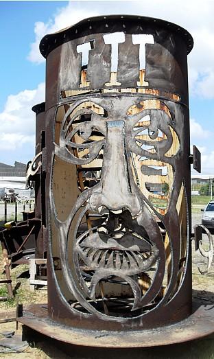 Está em cartaz, apenas esta semana, como parte da 2ª Semana do Saveiro, a exposição Água Grande, do artista plástico bahiano Bel Borba. Os 24 trabalhos, feitos em proporções monumentais a partir de sucatas de navios, se dividem em dois temas: as cenas urbanas (de alguma forma ligada aos saveiros) e grandes máscaras rituais (como esta, ao lado), com alguma evocação nagô e kibundu.